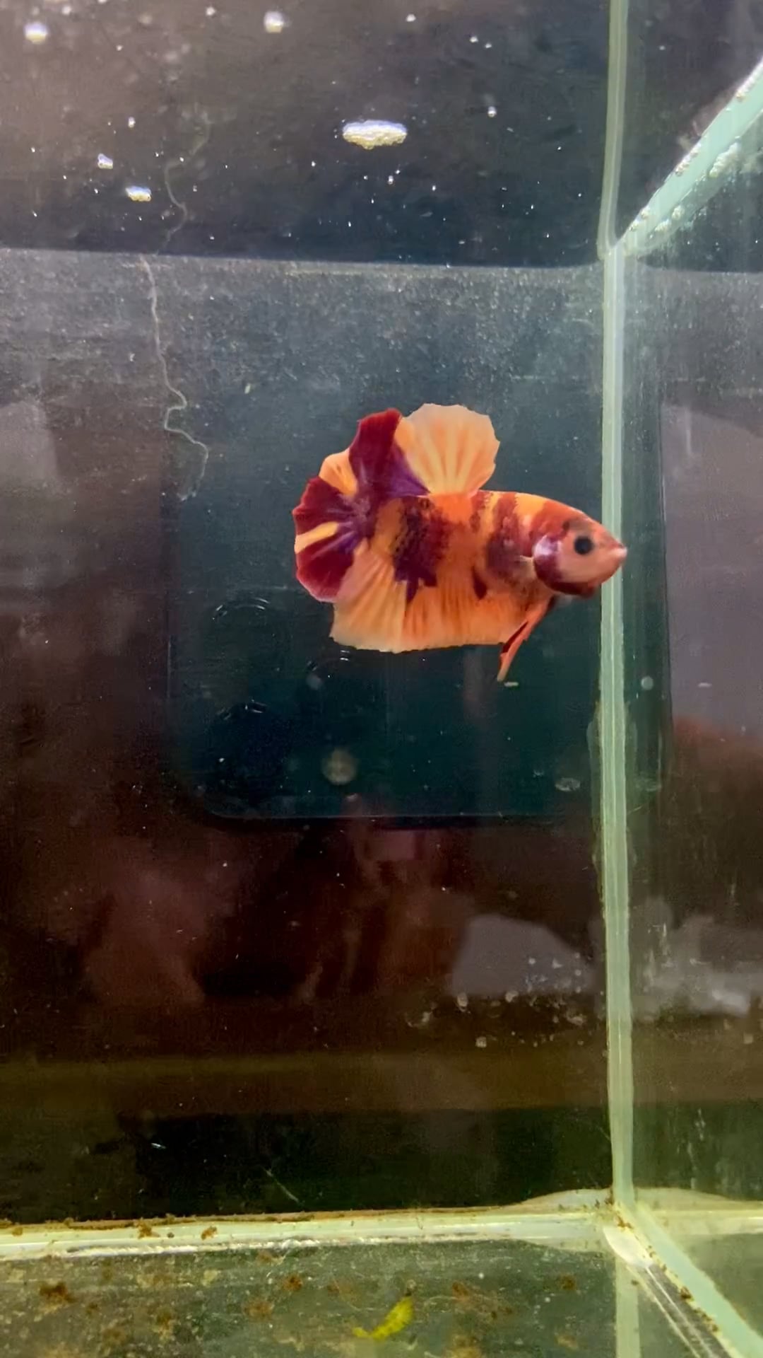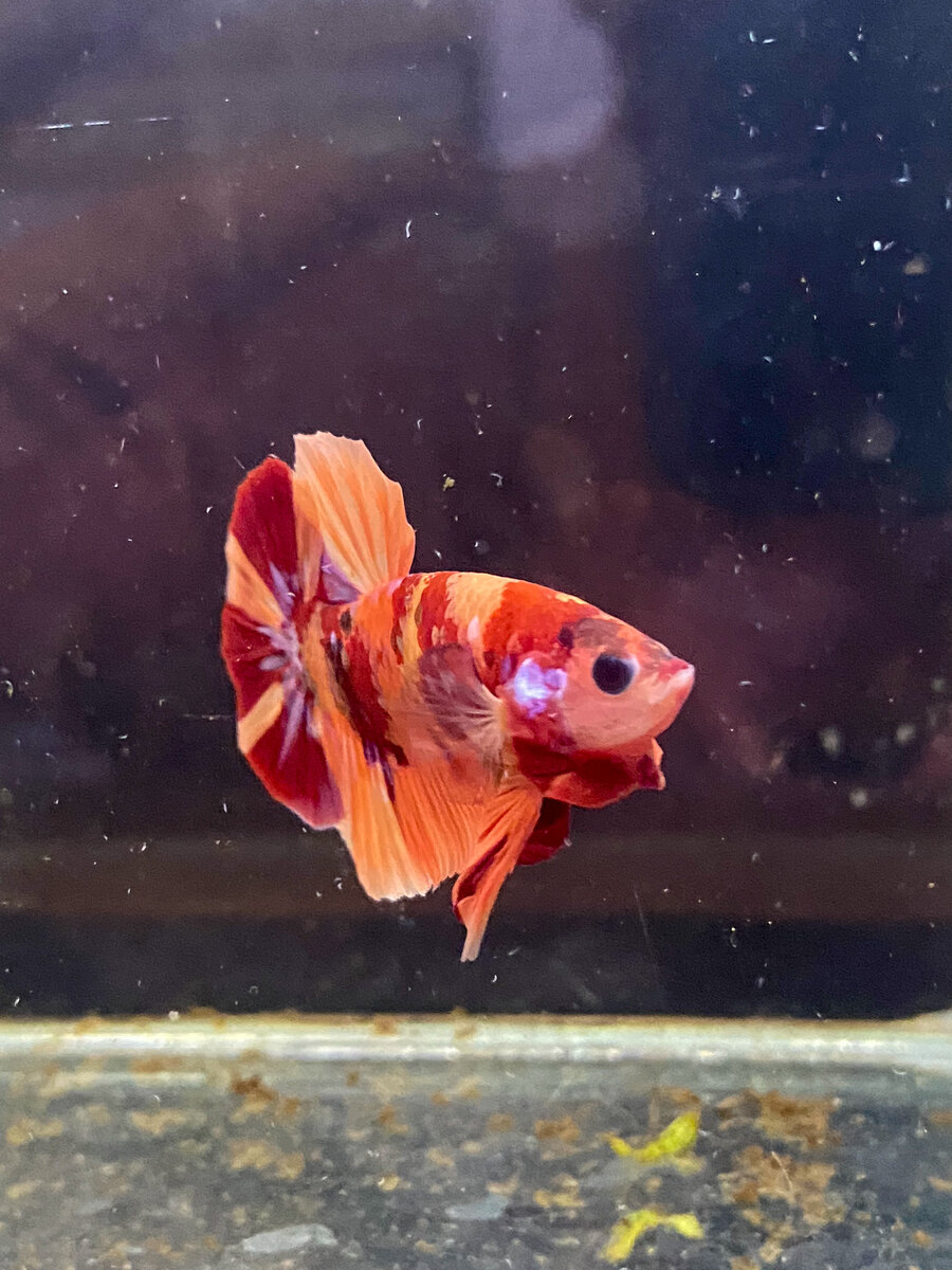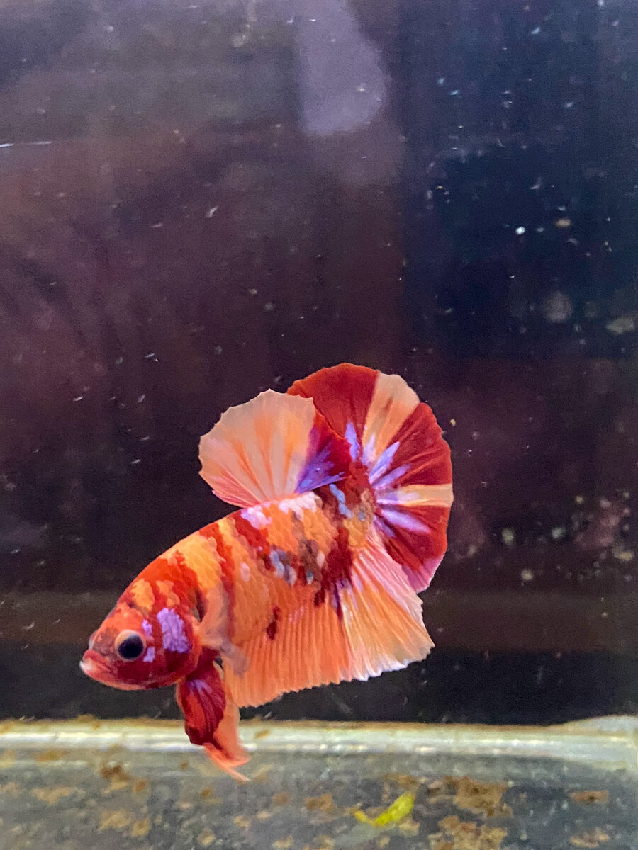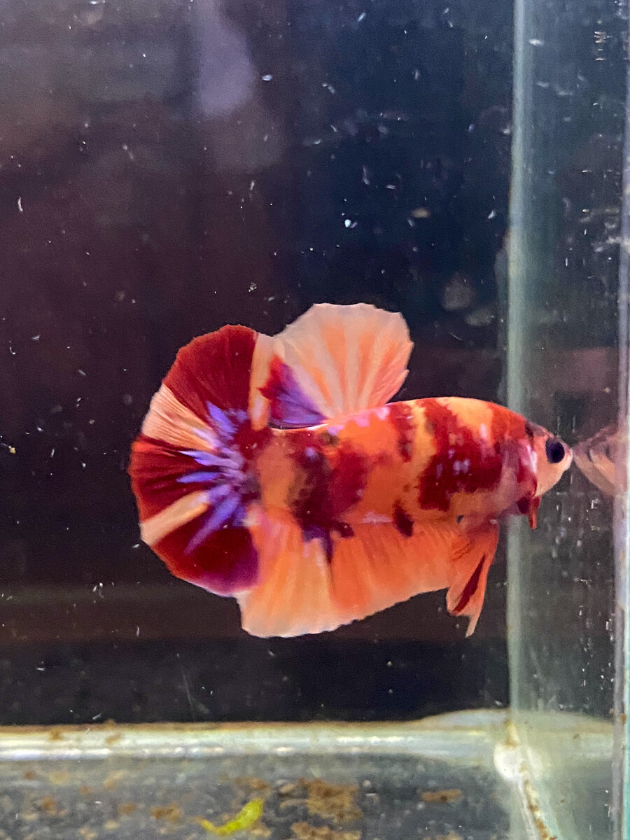 Cá Betta Koi Nemo Galaxy, với bộ vay lấp lánh, trở thành hình ảnh huyền bí giữa vũ trụ cá cảnh.